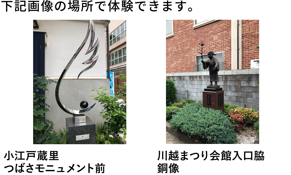 ・小江戸蔵里のつばさモニュメント前にコバトン・さいたまっちの3Dキャラが登場するよ!一緒に撮影してね♪