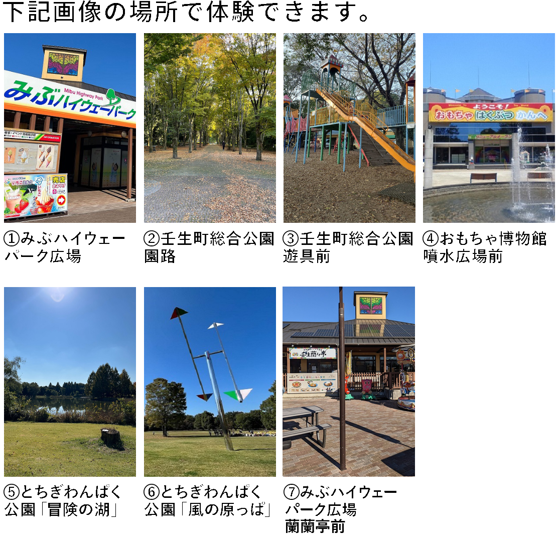 (みぶハイウェーパーク、壬生町おもちゃ博物館、壬生町総合公園、とちぎわんぱく公園)